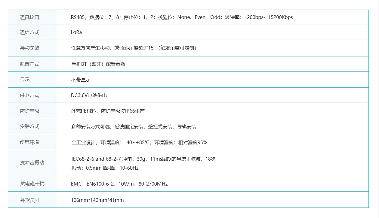 XL51DA360S智能移動(dòng)檢測(cè)傳感器,集成傳感元件、信號(hào)處理、無(wú)線通訊、電池供電于一體,產(chǎn)品在任何方向發(fā)生移動(dòng),或是傾斜角度超過(guò)15°,都會(huì)被可靠觸發(fā),并上傳報(bào)警信息和電池電壓。