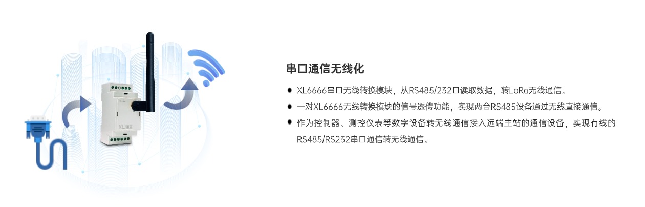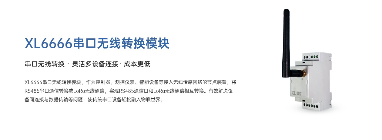 XL6666串口無線轉(zhuǎn)換模塊,作為控制器、測控儀表、智能設(shè)備等接入無線傳感網(wǎng)絡(luò)的節(jié)點(diǎn)裝置,將RS485串口通信轉(zhuǎn)換成LoRa無線通信,實現(xiàn)RS485通信口和LoRa無線通信相互轉(zhuǎn)換。有效解決設(shè)備間連接與數(shù)據(jù)傳輸?shù)葐栴},使傳統(tǒng)串口設(shè)備輕松融入物聯(lián)世界。