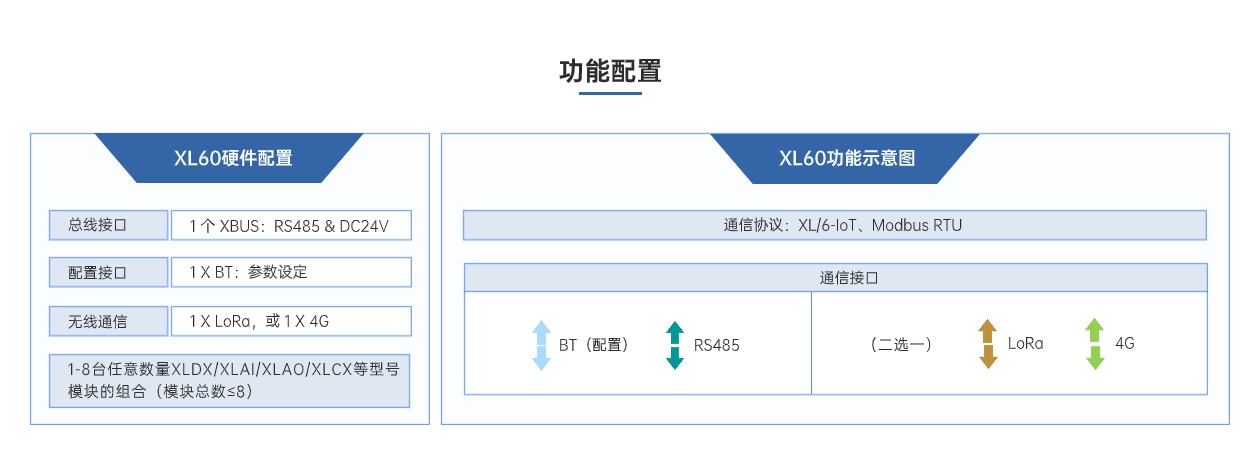 XL60無線采集模塊,采集模擬、開關(guān)信號,輸出模擬、開關(guān)信號,可選多種無線通訊方式。模塊化設(shè)計(jì),更方便擴(kuò)展輸入、輸出數(shù)量。