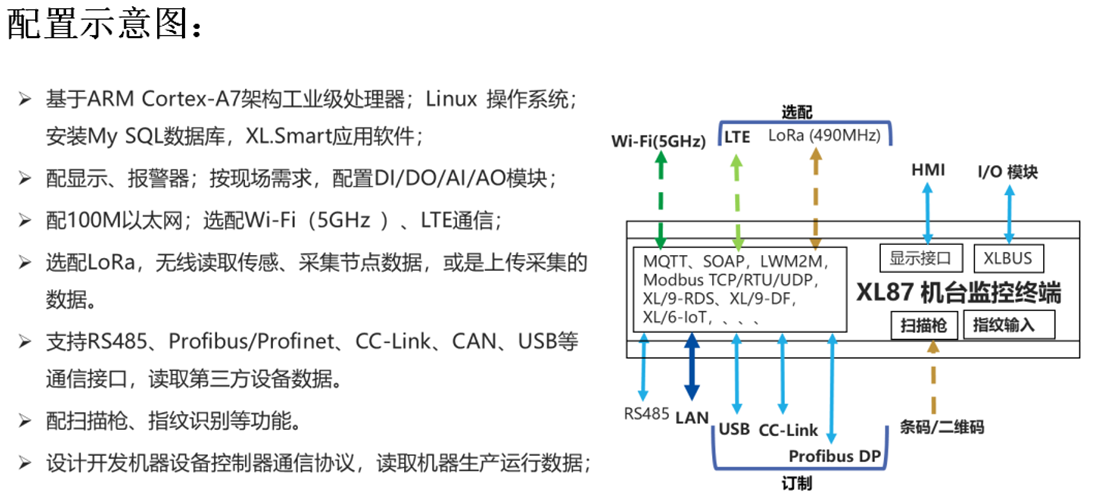 XL87機(jī)臺(tái)監(jiān)控終端,是構(gòu)建工廠數(shù)字化的節(jié)點(diǎn)裝置,智能化機(jī)器設(shè)備及生產(chǎn)管理,向工業(yè)4.0靠近。