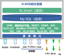 XL80通信主機,從設備通信接口,讀取設備或系統(tǒng)的運行數據,通信協議轉換處理后,再通過Ethernet或Wi-Fi,接入LAN,轉發(fā)數據至MES。