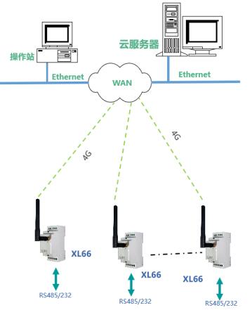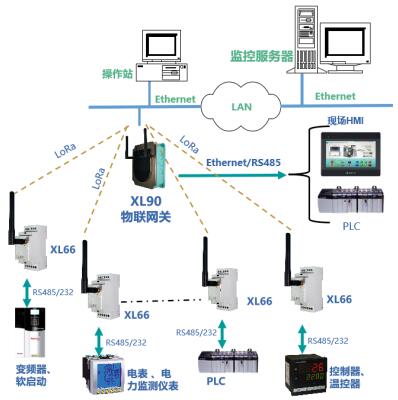 工廠、車間、園區(qū)等場(chǎng)所,有RS485或232通信接口的控制器、二次儀表、變送器等,可通過XL66實(shí)現(xiàn)無(wú)線聯(lián)網(wǎng)。