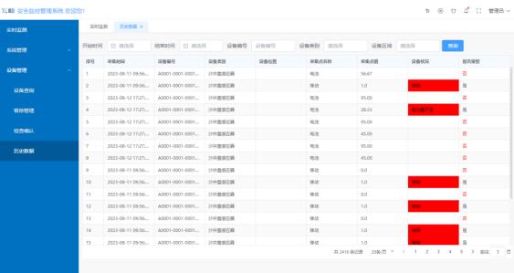 可篩選某個(gè)日期、設(shè)備編號(hào)、類別、區(qū)域的歷史數(shù)據(jù),一鍵導(dǎo)出為表格,便于分析、管理。