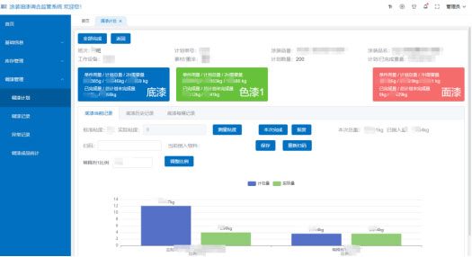 可視化操作界面:系統(tǒng)采用可視化直觀調(diào)漆界面設(shè)計(jì),實(shí)時(shí)顯示已倒入的原料重量,精準(zhǔn)計(jì)算;