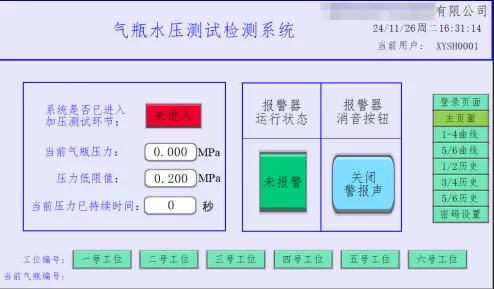 歷史記錄:自動記錄測試時間、操作員身份信息、工位信息、鋼瓶身份信息、壓力數(shù)據(jù),生成歷史曲線;